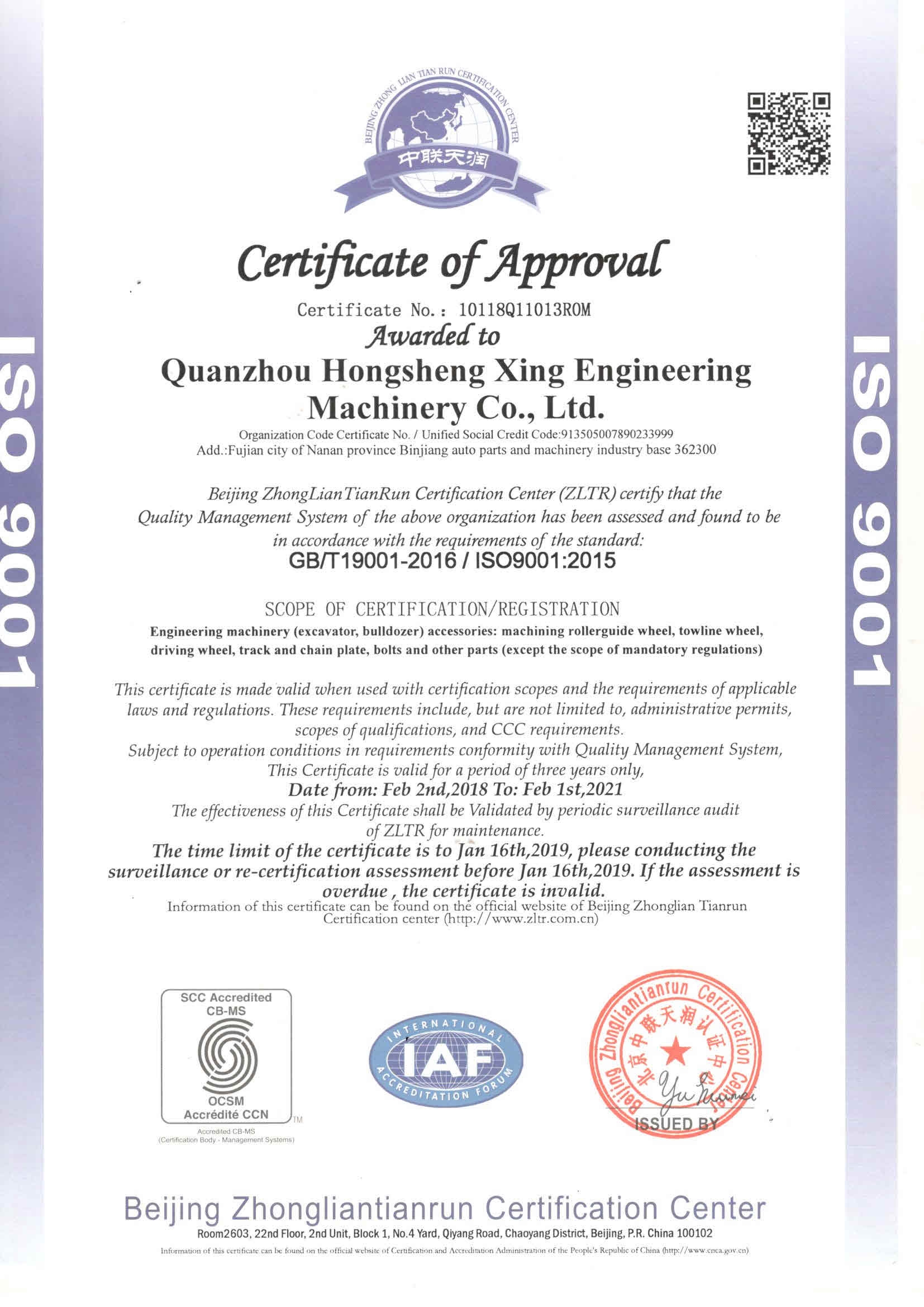 質(zhì)量管理體系認(rèn)證證書